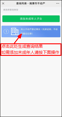 ⑸. 如需添加未成年人請(qǐng)點(diǎn)擊“添加未成年子女”后輸入身份信息并點(diǎn)擊確認(rèn),再點(diǎn)擊“本人不動(dòng)產(chǎn)登記情況”